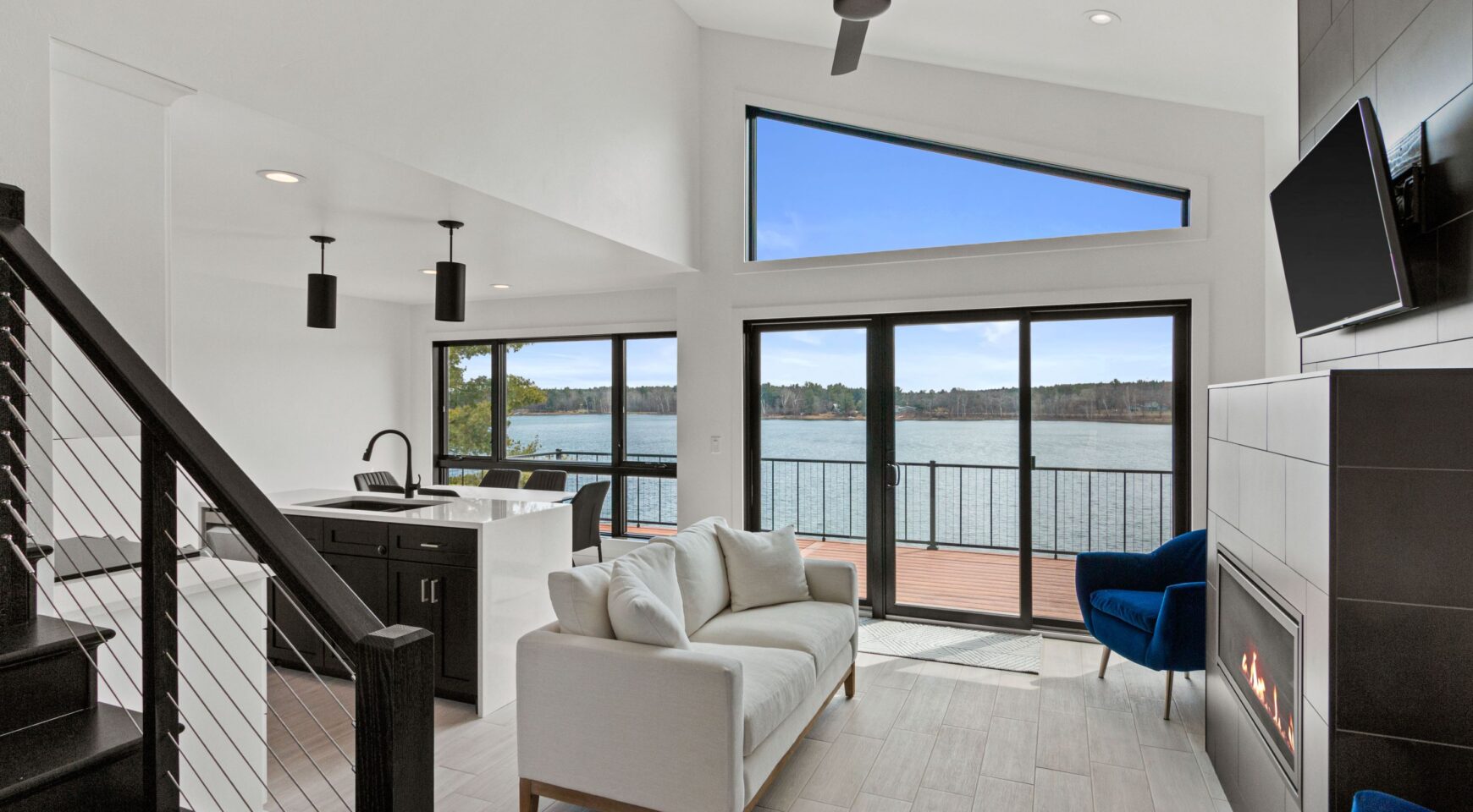 walk out basement. This brand-new home offers plenty of family fun on the lake. Pine lake is 104 acres with a max depth of 21 feet. Enjoy the endless views from the maintenance free deck.