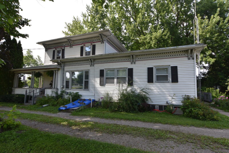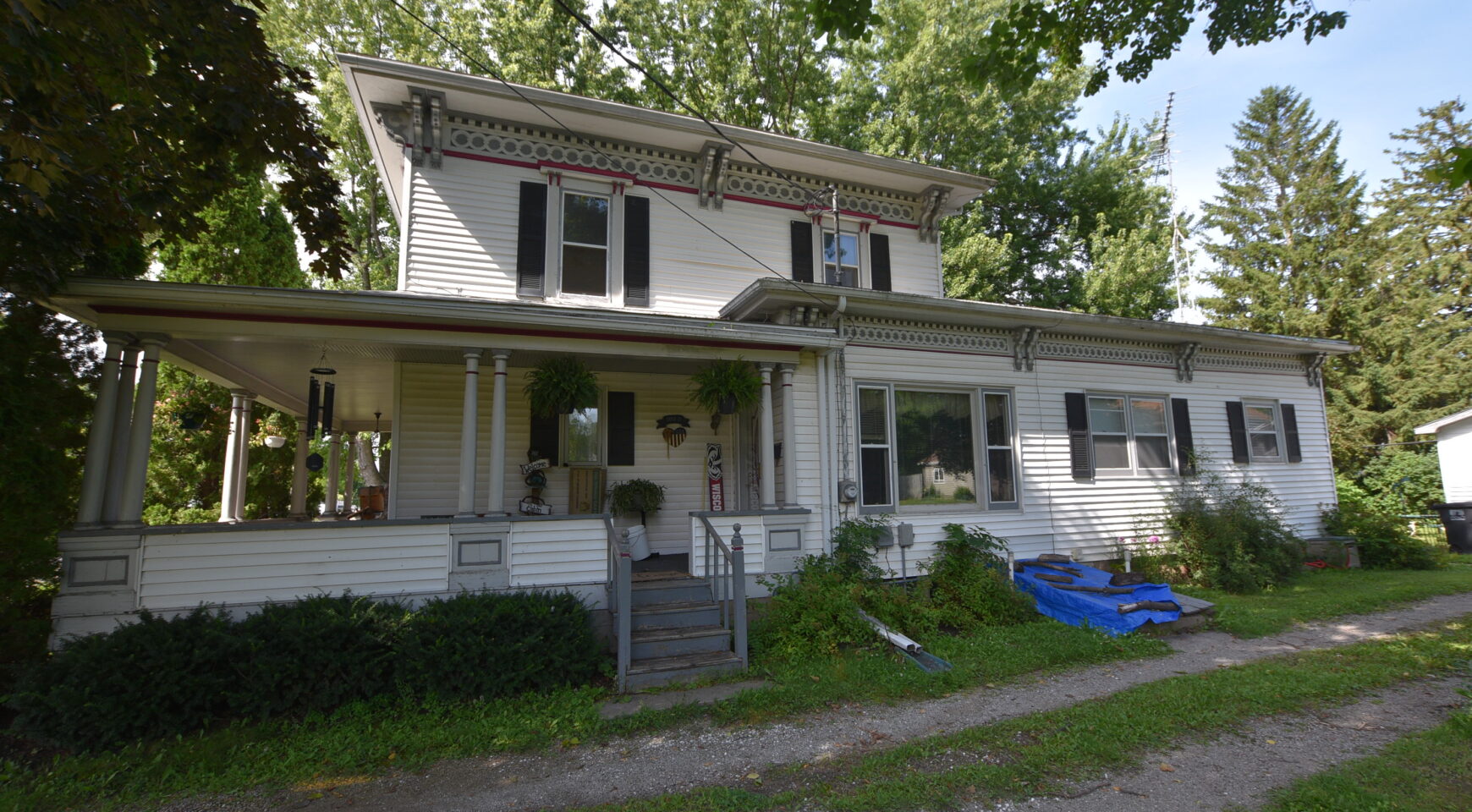 Victorian style home in a great location with a large wrap around porch and beautiful woodwork throughout. Home is currently setup as an upper and lower duplex which generates $800 for the lower and was getting $550 a month in rent from the upper. Could easily be turned into a single-family home with access to the upper in the main level. Main level of home offers 2 bedrooms, one full bath that includes laundry, galley style kitchen, and a large dining room. Upstairs consists of 1 bedroom, 1 full bath, its own kitchen, and living room. Home sits on a double lot with large trees which creates a park like setting. Just a short walk to downtown, opportunities are endless.
