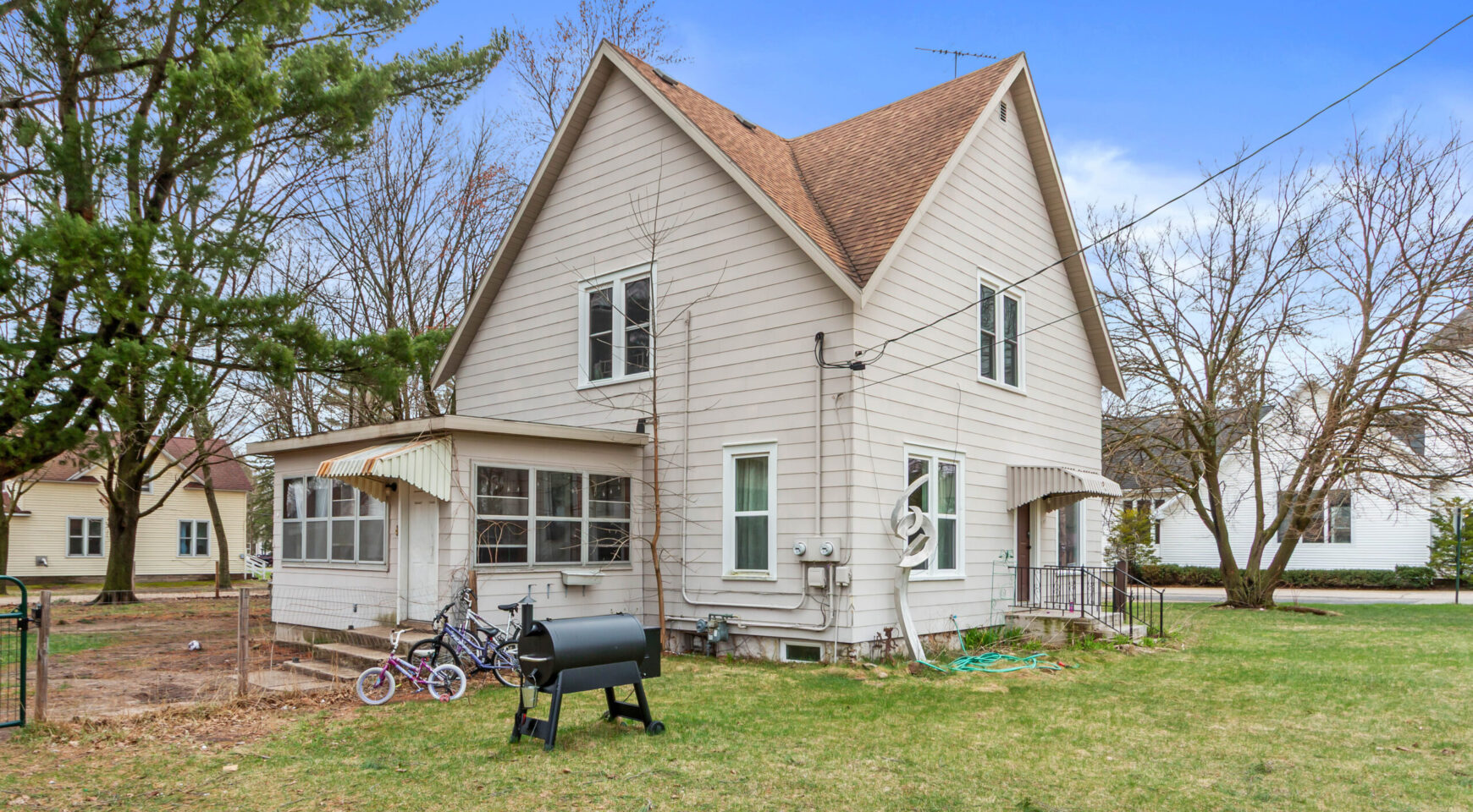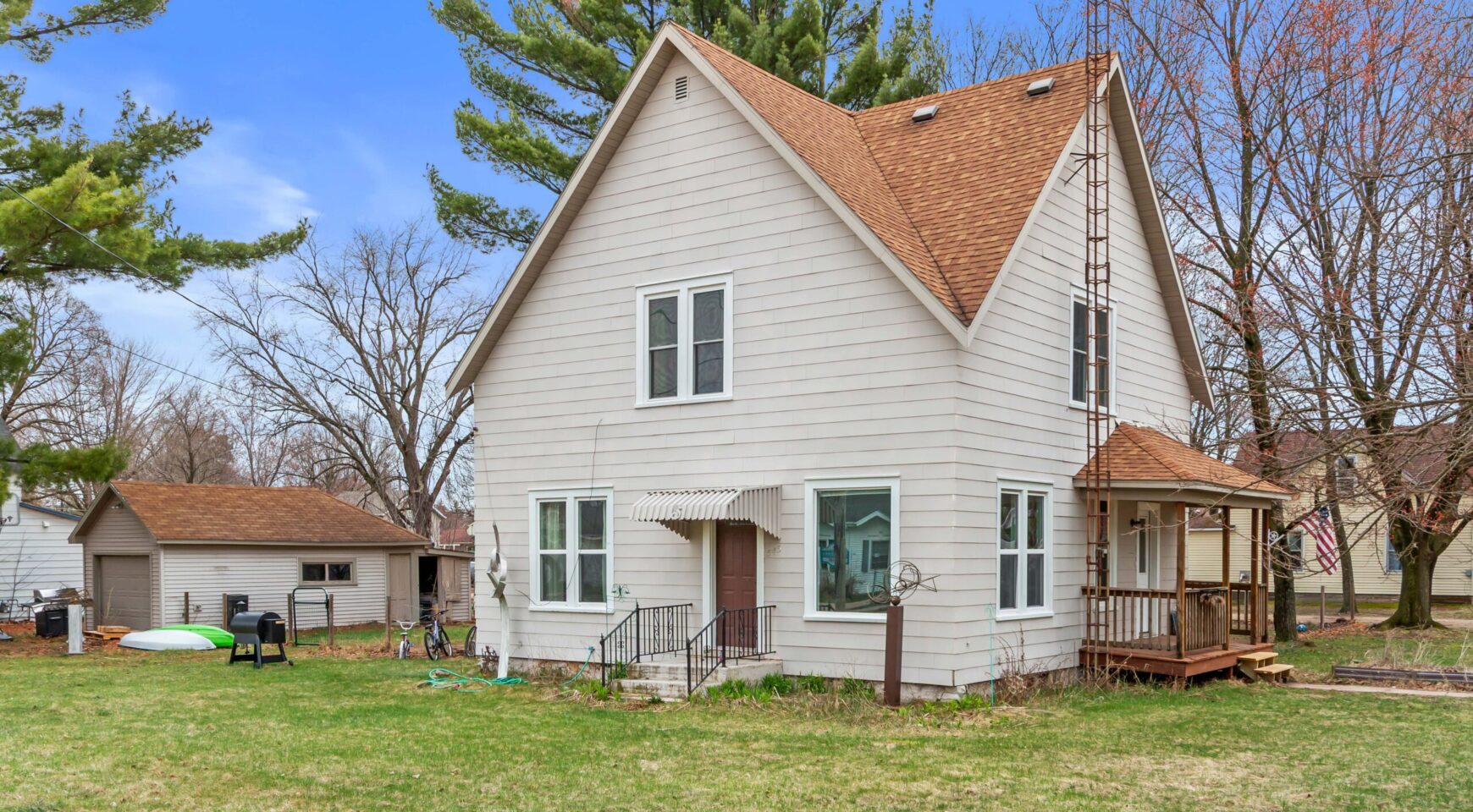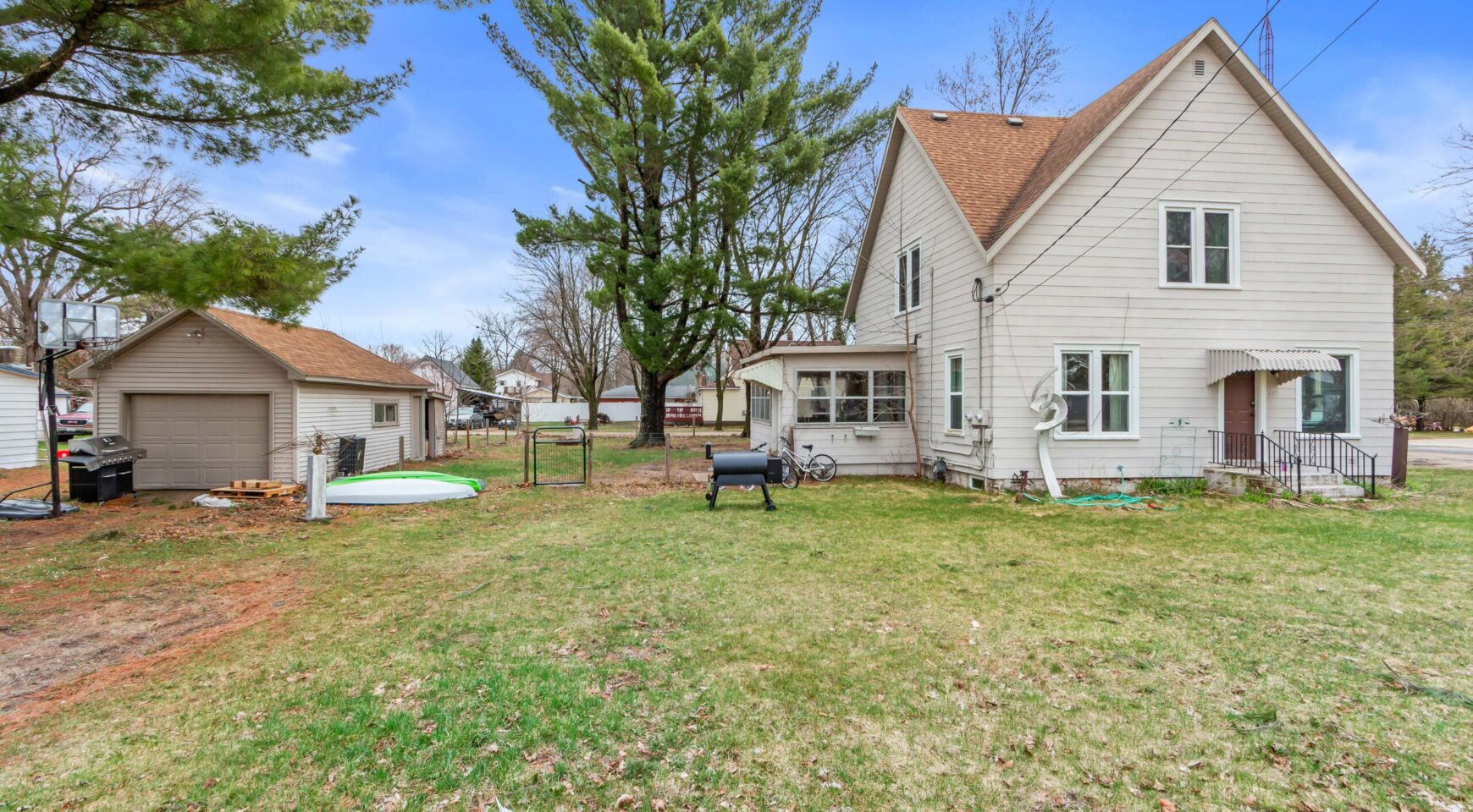 Located on a spacious corner lot in Wild Rose, this charming 3-bedroom, 2-bath home offers over 1,500 sq ft of comfortable living space. Enjoy a bright interior featuring refinished original hardwood floors and a functional layout. The home includes a 3-season room, great for relaxing mornings or evenings. Outside, you’ll find mature trees, a detached garage, shed, and an additional lot providing extra space and flexibility. AC and furnace updated in 2022 and new pressure tank in 2024